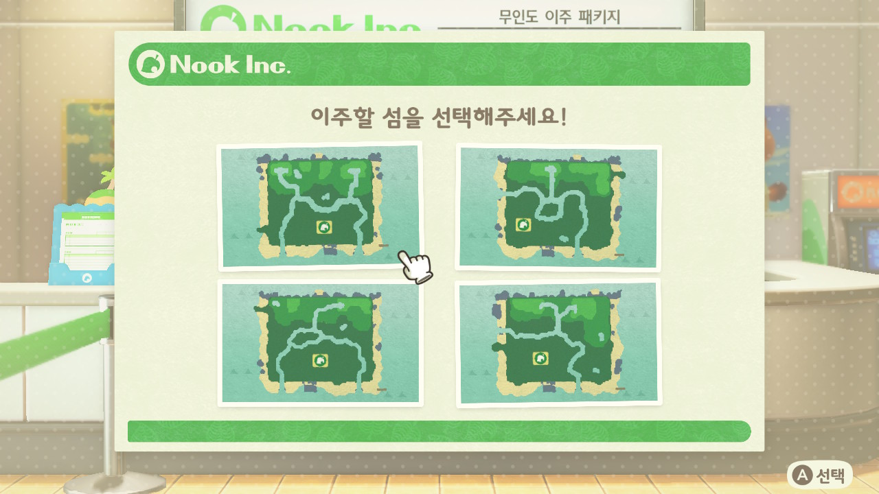 캐릭터를 설정하고 나면 이렇게 섬을 고르라고 네가지 모양을 제시해 줍니다.