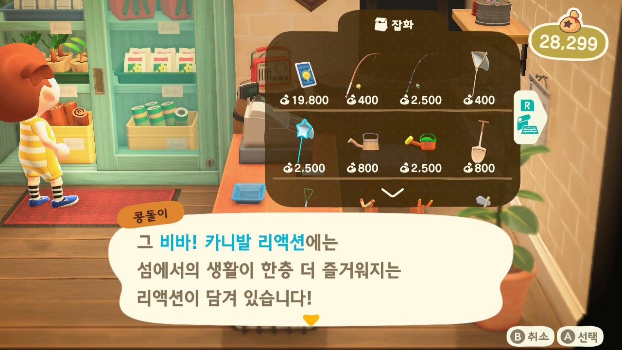 오늘 하루만 상점 진열장을 열면, 19,800벨에 카니발 리액션을 팔고 있습니다.