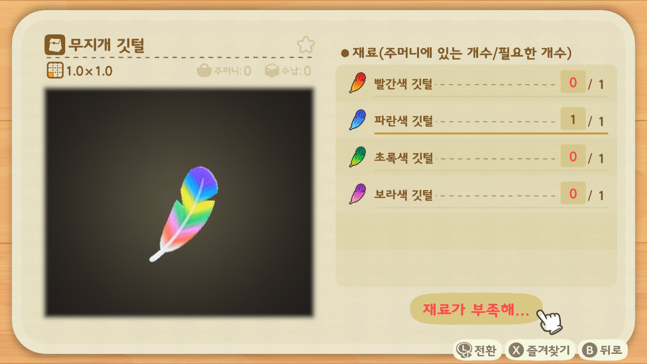 그 외의 컬러를 갖고싶다면 베르리나에게 원하는 색의 깃털을 전달해야 합니다.