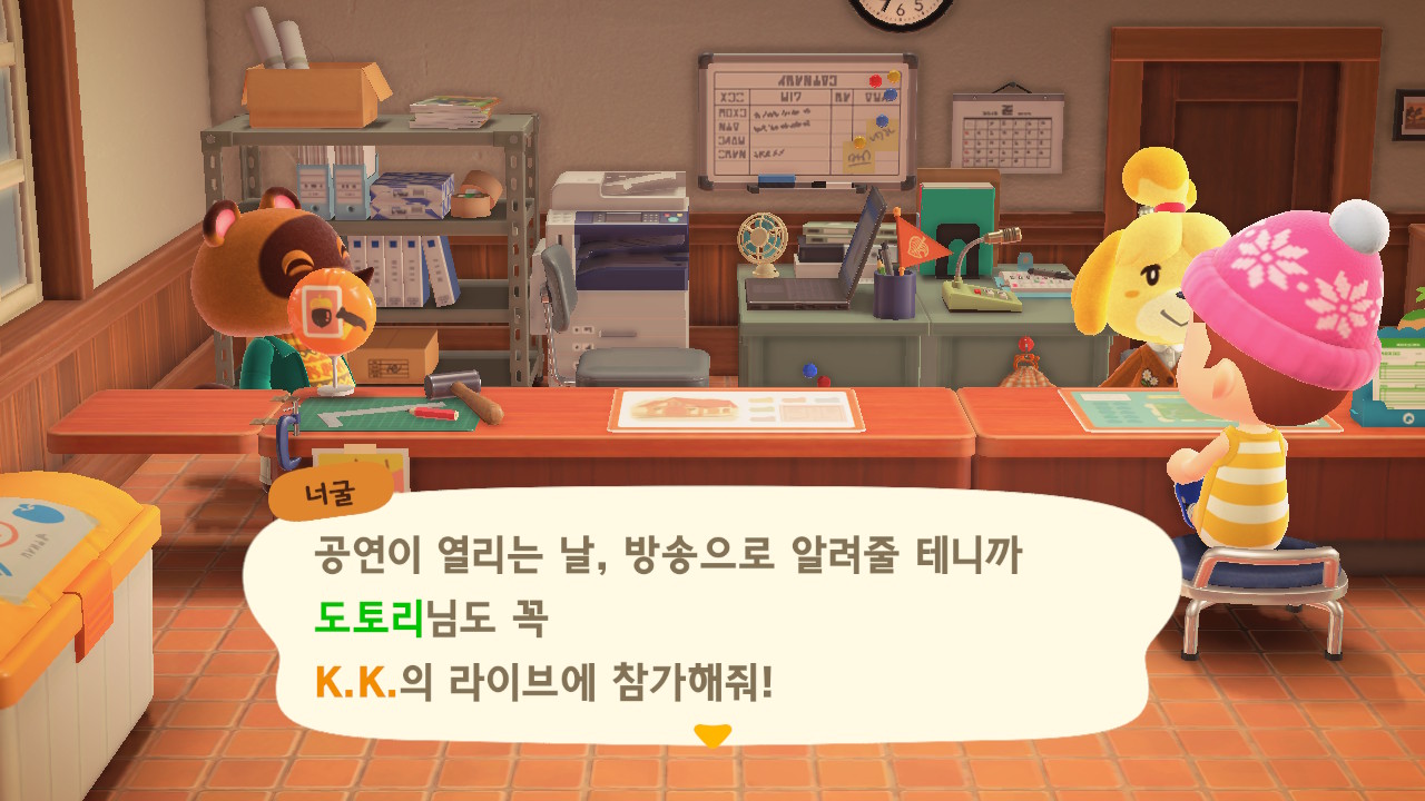 오늘은 모동숲의 큰 기준점, K.K 초대하는 방법에 대해 알아보도록 하겠습니다!