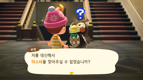 4. 위의 모든 조건을 충족시킨 후, 부엉에게 말을 걸면 마스터를 찾아달라고 상담을 해 옵니다.