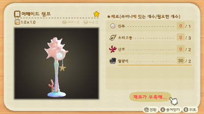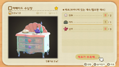 진주 1개 / 소라고동 3개 / 산호 2개 / 철광석 2개