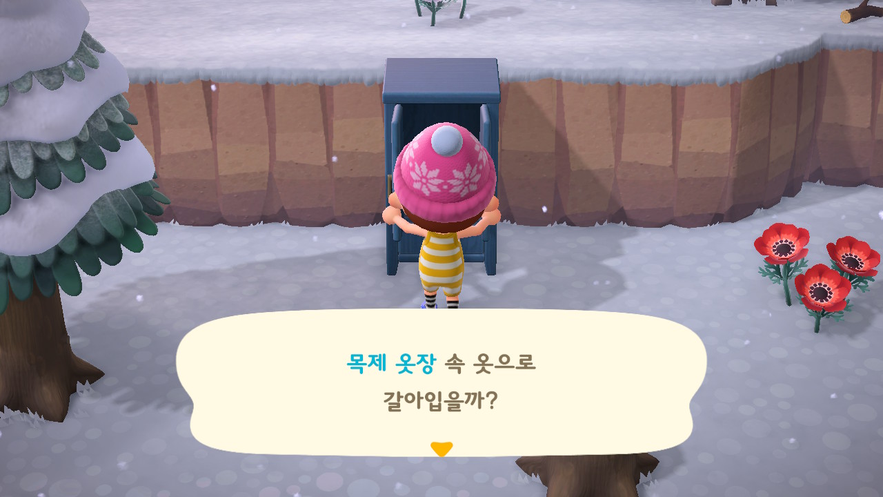 아이스박스, 옷장 등등 뚜껑 혹은 문이 달린 상자라면 뭐든지! 모동숲에선 옷장이 됩니다.